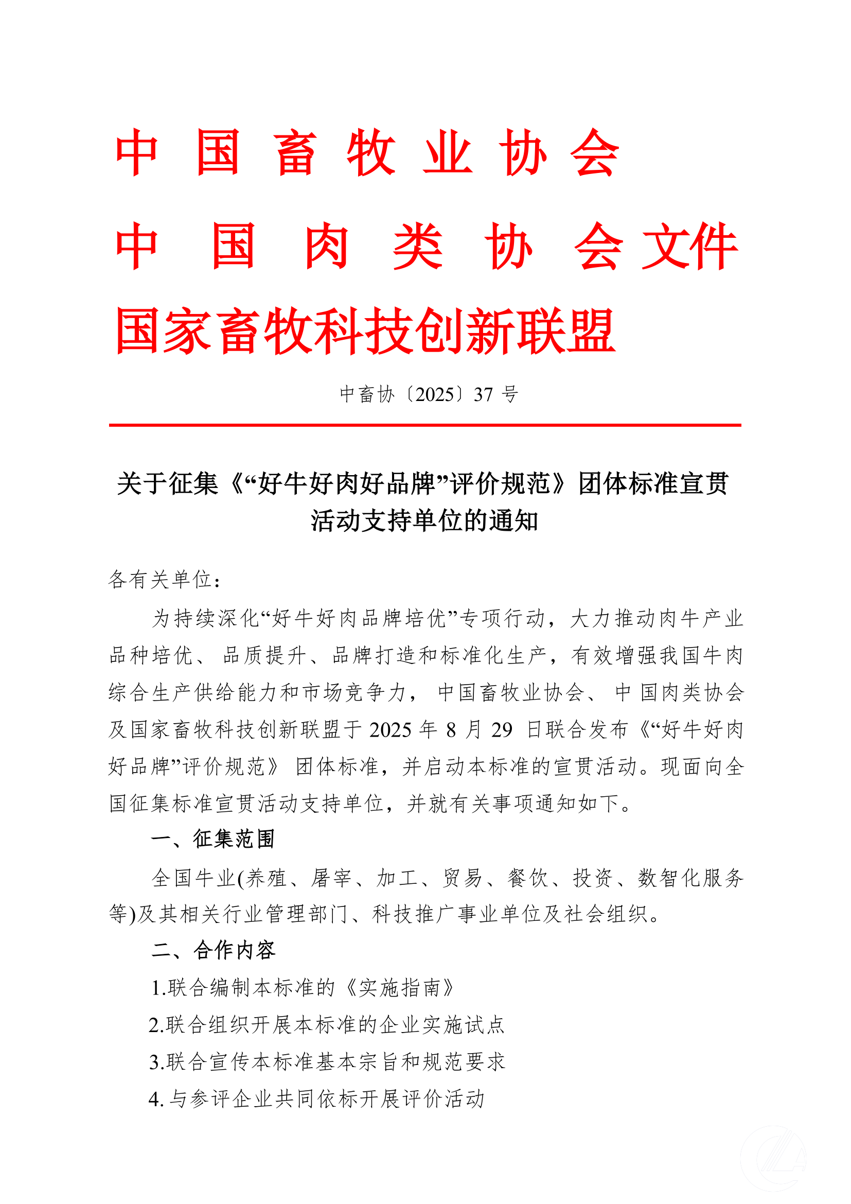 關于征集《“好牛好肉好品牌”評價規范》團體標準宣貫活動支持單位的通知