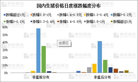 卓創資訊統計數據顯示,非瘟發生后有5.84%時間生豬價格日漲跌幅超過1元/公斤,超過了價格漲跌幅0.8-1.0元/公斤時間占比,價格的調整存在情緒性。日度價格波幅超過1.0元/公斤時間我們稱之為非理性超調。