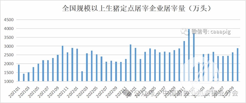 2、2024年10月份規模以上生豬定點屠宰企業屠宰量2876萬頭,環比增長8.9%,同比增長0.3%。