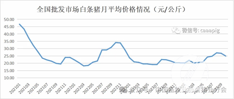 4、2024年10月份全國批發市場白條豬價格24.92元/公斤,環比下跌7.0%,同比上漲15.9%。