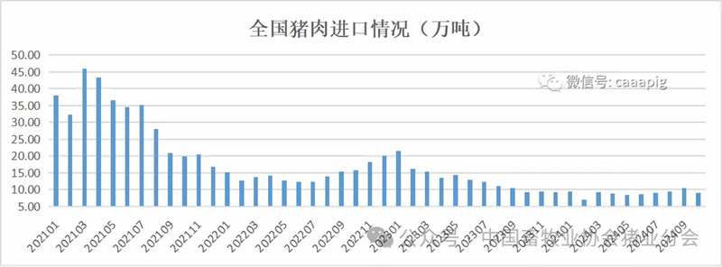 1、2024年10月進口豬肉9.02 萬噸,環比下降12.8%,同比下降1.6%。