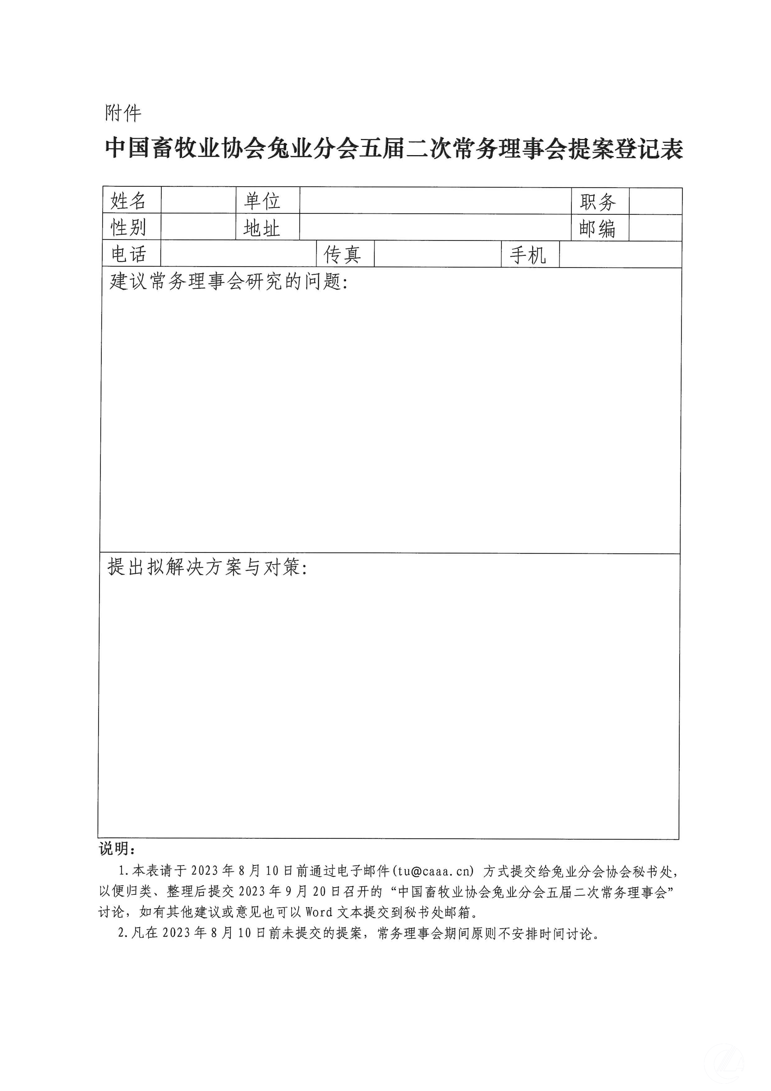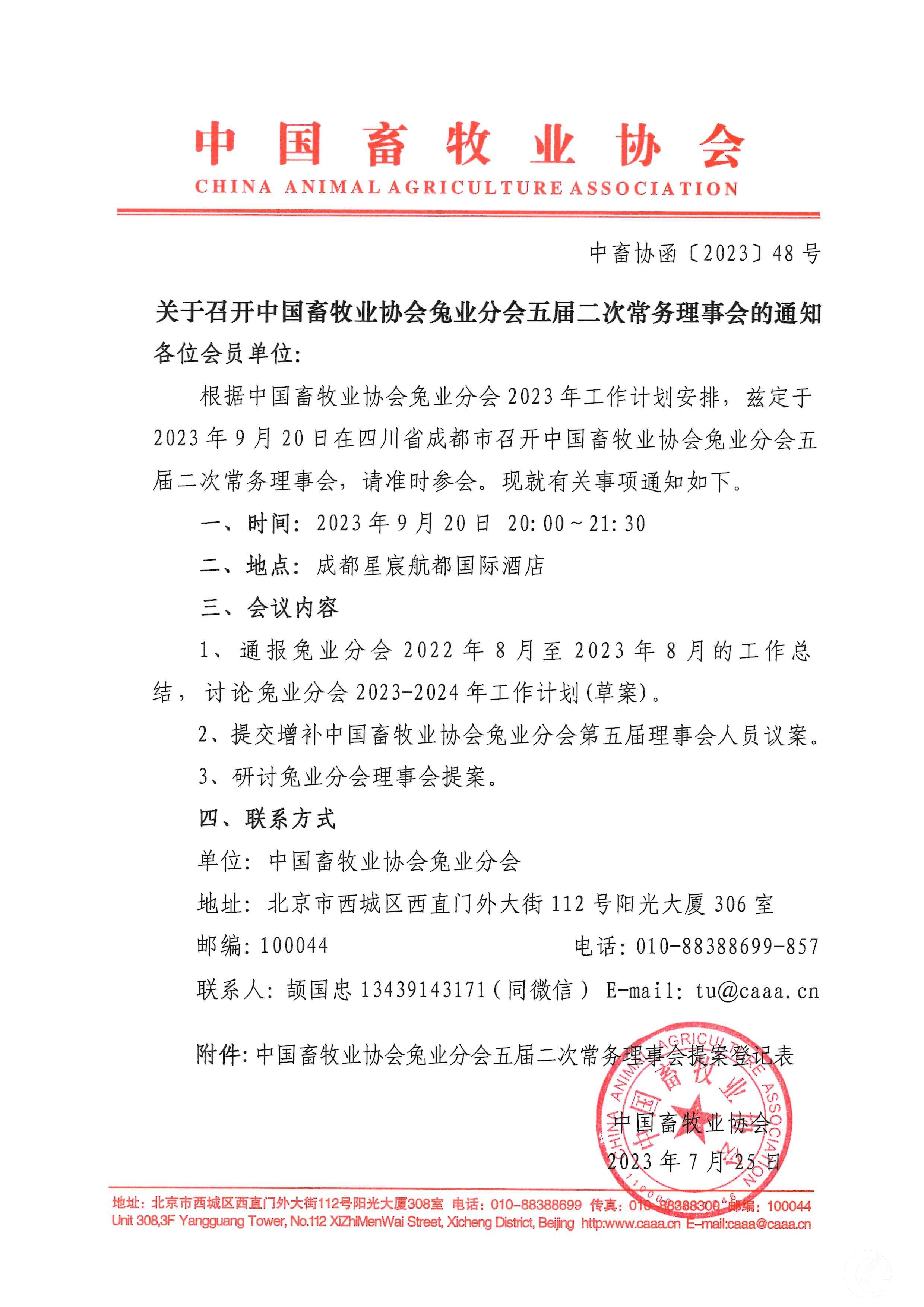 關于召開中國畜牧業協會兔業分會五屆二次常務理事會的通知