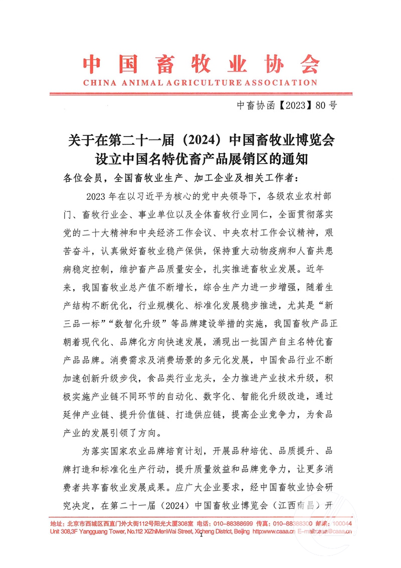 關于在中國名特優畜產品展銷區提供增值服務的通知
