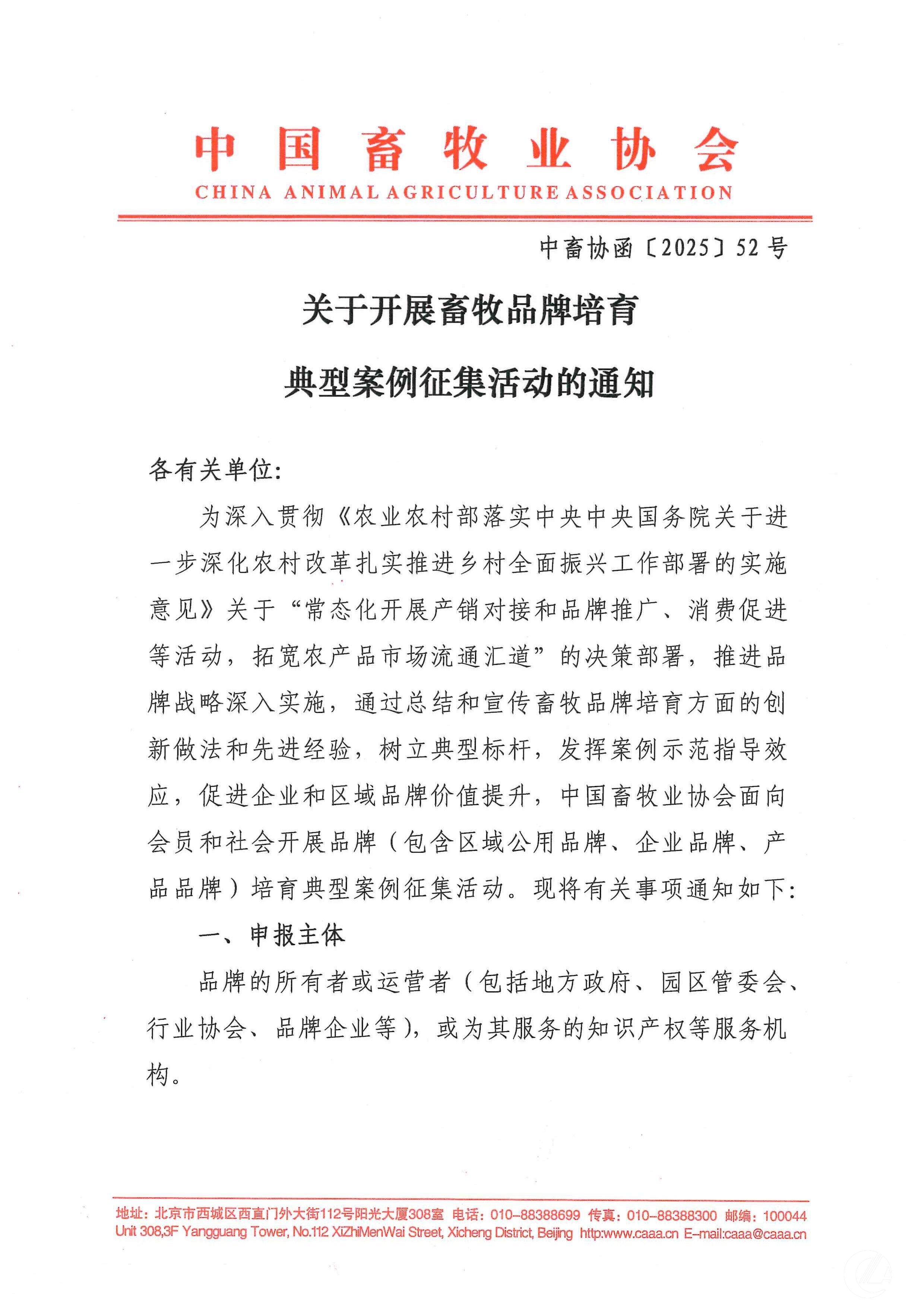 關于開展畜牧品牌培育典型案例征集活動的通知