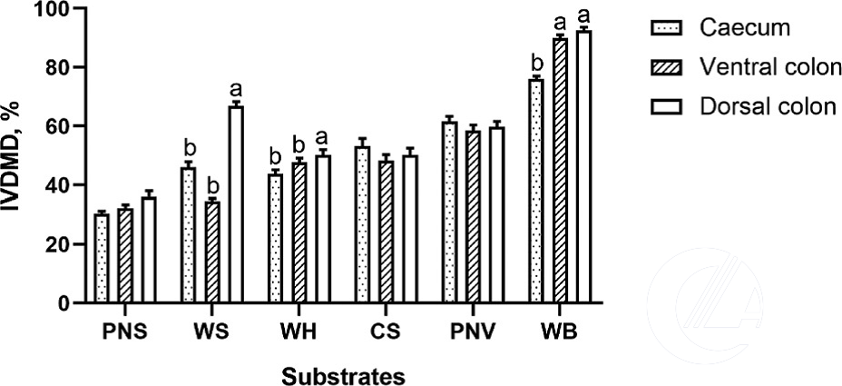 然而,目前有關驢盲腸和結腸微生物對不同纖維飼料消化率的比較研究資料有限,了解驢后腸微生物對不同纖維飼料的降解發酵能力有助于篩選地源性飼草料種類,降低驢的飼喂成本。對此,毛驢高效繁育與生態飼養研究院采集了山東地區規模化驢場常規使用的幾種纖維飼料,利用體外連續培養技術研究了驢盲腸與結腸微生物對上述飼料底物消化率和體外發酵的影響。