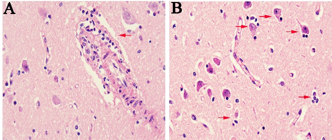 (分離毒株的形態學觀察) (EHV-8引起典型的病毒性腦炎病變)