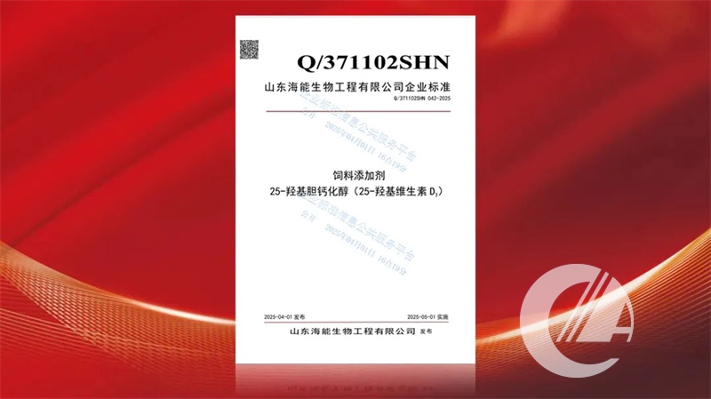 作為行業標準制定的主要參與者,海能公司始終創新發展,推動產業升級:農業農村部2014年2月1日起將25-羥基維生素D3列入飼料添加劑目錄,海能于2014年3月獲得國內首部25-羥基維生素D3產品標準備案,同年10月獲得國內首個25-羥基維生素D3生產許可,并在濟南國際會展中心成功召開“25-羥基維生素D3”新聞發布會。2017年10月,海能作為標準起草單位之一,與中國農業科學院農業質量標準與檢測技術研究所、帝斯曼維生素(中國)有限公司共同制定《飼料添加劑25-羥基膽鈣化醇(25-羥基維生素D3)》行業標準。2018年8月,海能承辦的首場《飼料添加劑25-羥基膽鈣化醇(25-羥基維生素D3)》行業標準商討會在日照舉行。2025年1月9日,中華人民共和國農業農村部發布第873號公告,25-羥基維生素D3等330項農業行業標準正式發布,自2025年5月1日起實施。2025年3月31日,海能最新發布25-羥基維生素D3產品高標準。