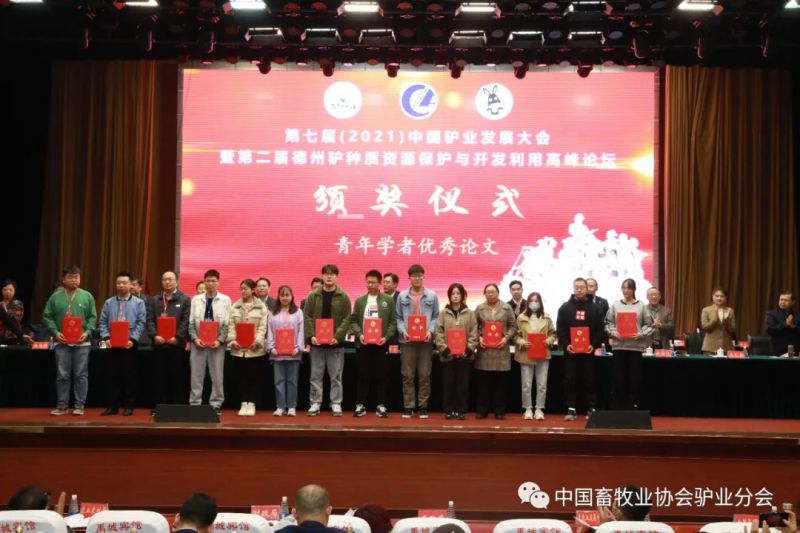 青年學者是產業科技的未來。為了培養、表彰高層次青年人才,大會組委會組織了“青年學者優秀論文”評選活動,經11位專家對本次會刊征集的57篇論文進行評比,共選出優秀論文22篇。其中呼和浩特市農牧技術推廣中心的阿侖、聊城大學李孟孟等5人獲得青年學者組優秀論文,內蒙古農業大學岳遠西、中國農業大學趙威森、青島農業大學的孫瀟等17人獲得學生組優秀論文獎勵。山東省驢產業技術體系首席科學家王長法院長宣讀了優秀論文獲獎名單。