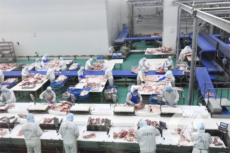 對于被參觀企業,有了向全國的牛人展現自身企業實力和形象的一個很難得的機會。億利源董事長楊振剛親自擔任解說,結合企業宣傳墻上的圖片,詳細介紹了企業的發展史。結合屠宰現場生產線,介紹了每一道工序企業采用的先進工藝。由于參觀人數較多,每位會議代表通過無線耳麥傾聽介紹,有的會議代表感嘆,楊董事長介紹的信息量很大,可學習借鑒的內容太多,可惜不能錄音。
