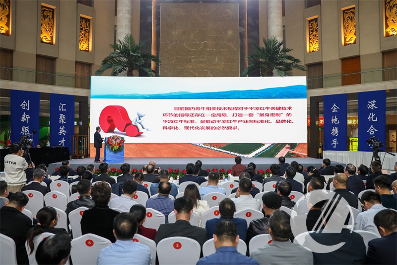 會上,播放了平涼市招商引資宣傳片,舉行了招商引資項目集中簽約儀式,發布了《平涼紅牛種群鑒定標準》《平涼紅牛繁殖技術規程》《平涼紅牛飼養管理技術規范》《平涼紅牛屠宰技術規范》《平涼紅牛胴體分級》和《平涼紅牛分割肉分級煎烤用途》等6項團體標準。平涼紅牛系列團體標準,初步構建了涵蓋種群、繁育、飼養、屠宰分割等多環節、全鏈式的平涼紅牛標準,填補了平涼紅牛產業無標準的空白,必將有力提升平涼紅牛產業標準化、科學化、品牌化發展水平,推動平涼紅牛產業高質量發展再上新臺階。