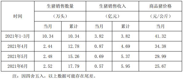 東瑞食品集團股份有限公司2021年6月份生豬銷售簡報: