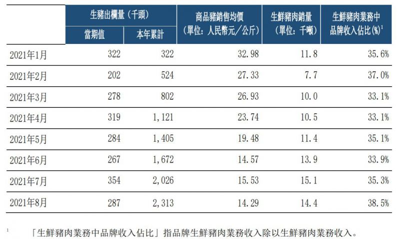 中糧家佳康(01610)發布公告,2021年8月,生豬出欄量為28.7萬頭,環比減少19%。1-8月生豬出欄量為231.3萬頭。