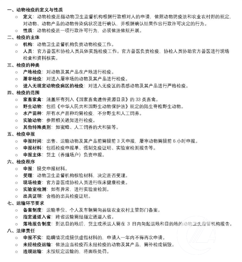 張志遠老師詳細解讀了動物檢疫監督相關制度,重點介紹了動物檢疫的制度要求和畜禽運輸的管理要求。他指出,“動物檢疫是一項行政許可行為,必須依法依規開展”。檢疫對象包括動物及其產品,檢疫主體為動物衛生監督機構及其官方獸醫和協檢人員。檢疫種類包括產地檢疫、屠宰檢疫和進入無規定動物疫病區的檢疫。檢疫申報是檢疫的起點,需提前3天提交申報材料,包括檢疫申報單、強制免疫證明和實驗室檢測報告。運輸環節需備案運輸車輛和主體,跨省運輸需經指定通道入省,并實行落地報告制度。違反檢疫要求的行為將面臨嚴厲處罰。